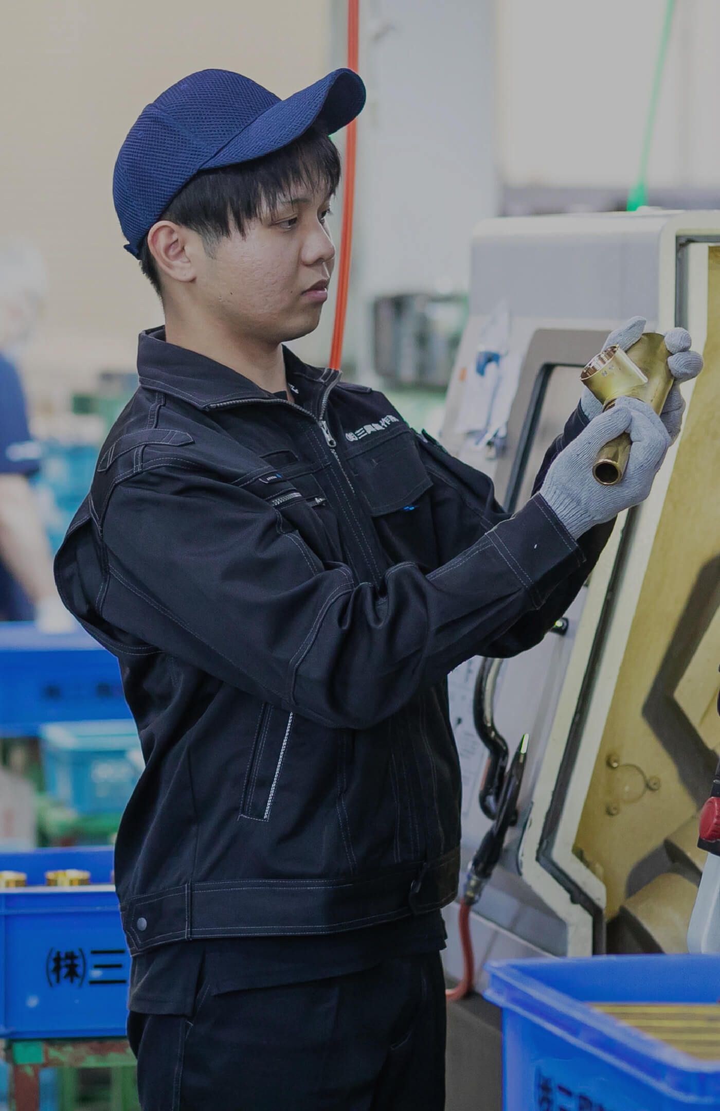 三興製作所は、各種水栓部品やバルブ部品を生産する会社として、精密な製品づくりに誠実に取り組み、社会に貢献しています。
